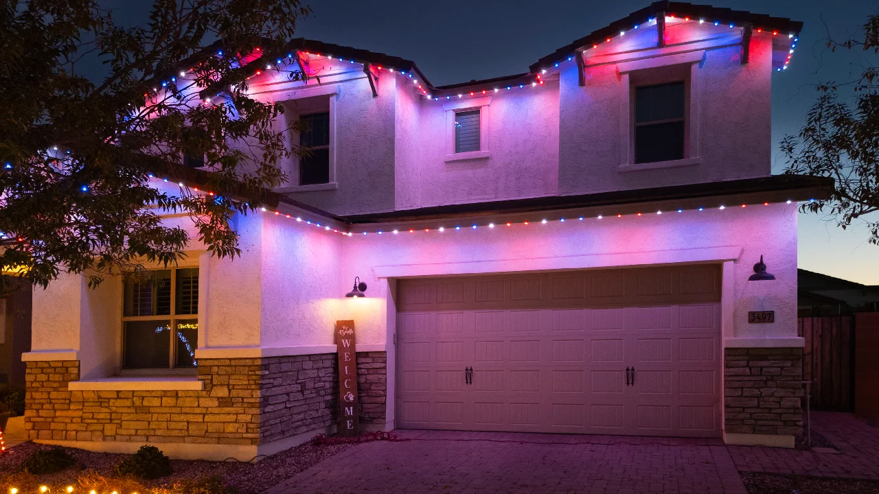 Celebrate Halloween with orange and purple lights. Observe Christmas with green and red. Support the Lobos with cherry and silver. Recognize Independence Day with red, white, and blue. Create a welcoming atmosphere for summer gatherings with soft white lighting. You get the idea.